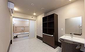 | 居室設備 | クローゼット、介護用ベット、エアコン、TV端子、トイレ、ナースコール、照明、スプリンクラー、洗面化粧台、カーテン、電話端子 |