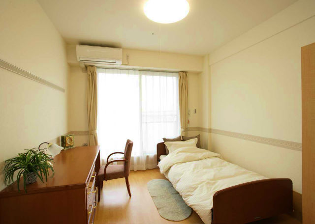 | 居室設備 | シャワー・暖房便座付トイレ、車いす対応洗面台、介護用電動ベッド(3モーター式・寝具付)、ナースコール2箇所(PHS連動タイプ)、照明、ワードローブ、チェスト(3段鍵付)、デスク、チェアー、カーテン、スプリンクラー等・※夫婦部屋のみ、ミニキッチン・浴室付きです |
