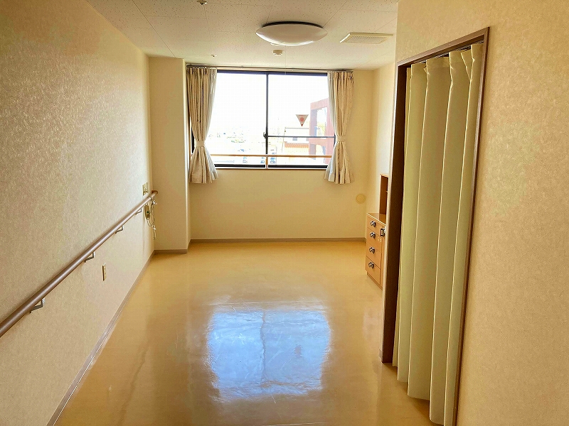 | 居室設備 | 地上波デジタルアンテナ、電話回線、ミニキッチン、電磁調理器 、玄関引き扉、下駄箱、タンス、手すり、フローリング、防災設備、ナースコール、空調換気設備、照明器具、間接照明、エアコン、電動介護ベッド、カーテン、防火カーテン、鍵、寝具一式 |