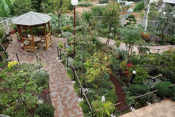 玄関を入ると、建物の中とは思えないような、中庭が広がります。