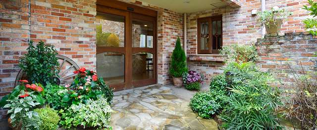 季節をお楽しみいただける工夫が随所に施されているホームの敷地内。植栽や滝、吹き抜け、3カ所の庭園など、緑と花、光と風、水のせせらぎを身近に感じられる“癒しの空間”をご用意しております。