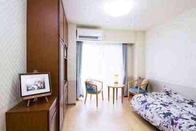| 居室設備 | オゾン消臭装置、収納家具、冷暖房完備、電動リクライニング式ベッド、コールボタン、テレビ、木製キャビネット、ウォシュレット付トイレ、応接セット、天井照明、フットライト、カーテン、洗面台、スプリンクラー |