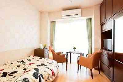 | 居室設備 | オゾン消臭装置、収納家具、冷暖房完備、電動リクライニング式ベッド、コールボタン、テレビ、木製キャビネット ウォシュレット付トイレ、応接セット、 天井照明、カーテン、洗面台、スプリンクラー、フットライト |