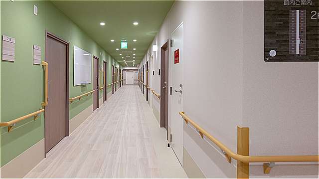 | 居室設備 | 介護ベッド、エアコン、クローゼット、カーテン、照明器具、トイレ、洗面台、緊急コール等 |