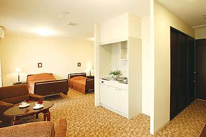 | 居室設備 | BSアンテナ、CSアンテナ、電話回線、ミニキッチン、玄関引き戸扉、クローゼット、空調換気設備、照明器具、エアコン、電動介護ベッド、カーテン、寝具一式、車椅子対応トイレ、車椅子対応洗面化粧台 |