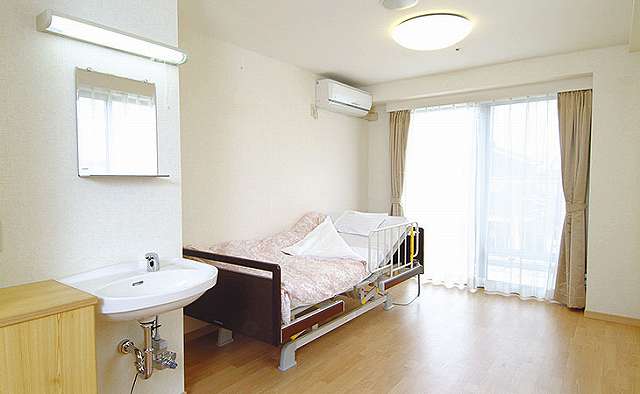 | 居室設備 | エアコン・シャワー(3階のみ)・トイレ・パラマウントベッド・ナースコール機能付電話・洗面台・カーテン・照明器具・ |