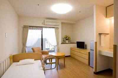 | 共有設備 | エントランスホール、フロント、ロビー、ホール、麻雀台、家庭菜園、一時介護室、健康管理・相談室、スタッフルーム、リハビリ室、機械浴室、ナースコール、居酒屋、売店、理美容室、自販機、公衆電話、厨房室、リネン室、汚物処理室、放送設備、防災設備、避難設備、脱臭設備、車椅子対応のリフトカー、各室インターホン設備(ナースコールとは別) |