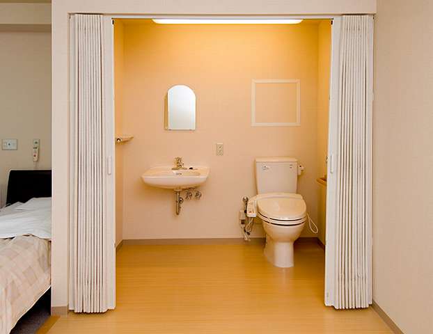 | 居室設備 | バリアフリー設計、ウォシュレット付トイレ、手すり、エアコン、電動介護ベッド、クローゼット、キャビネット、テーブル、ナイトテーブル、椅子、下駄箱、防火カーテン、スプリンクラー、デジタルハンディコール・*居室タイプにより一部仕様と異なる場合がございます。 |