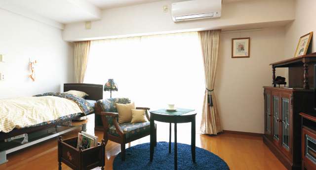 | 居室設備 | ミニキッチン、玄関引き戸扉、床暖房、フローリング、フラットフロア、ナースコール、空調換気設備、照明器具、エアコン、空気清浄器、電動介護ベッド、カーテン、寝具一式、温水洗浄機能付きトイレ、洗面化粧台、シャワー |