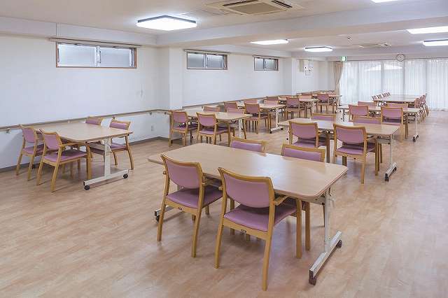 | 共有設備 | ロビー、食堂(多目的スペース・機能訓練室兼用)、応接室、大浴場、介護用浴室、個人用浴室、集中管理室(健康管理室・看護師室兼用)、事務室、トイレ、エレベーター、スプリンクラー、駐車場 |