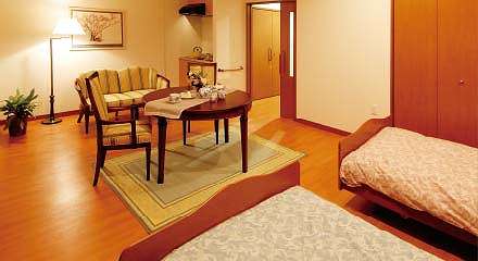 | 居室設備 | 介護用電動ベッド、エアコン、ナースコール、クローゼット、温水洗浄機能付トイレ、車椅子対応洗面台、電話配線、テレビ配線、スプリンクラー、ミニキッチン(夫婦部屋) |