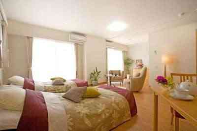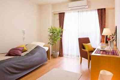 | 居室設備 | エアコン、クローゼット、介護用電動ベッド、ナースコール、車いす対応洗面台、温水洗浄機能付トイレ、カーテン、チェスト、デスク、アームチェア |