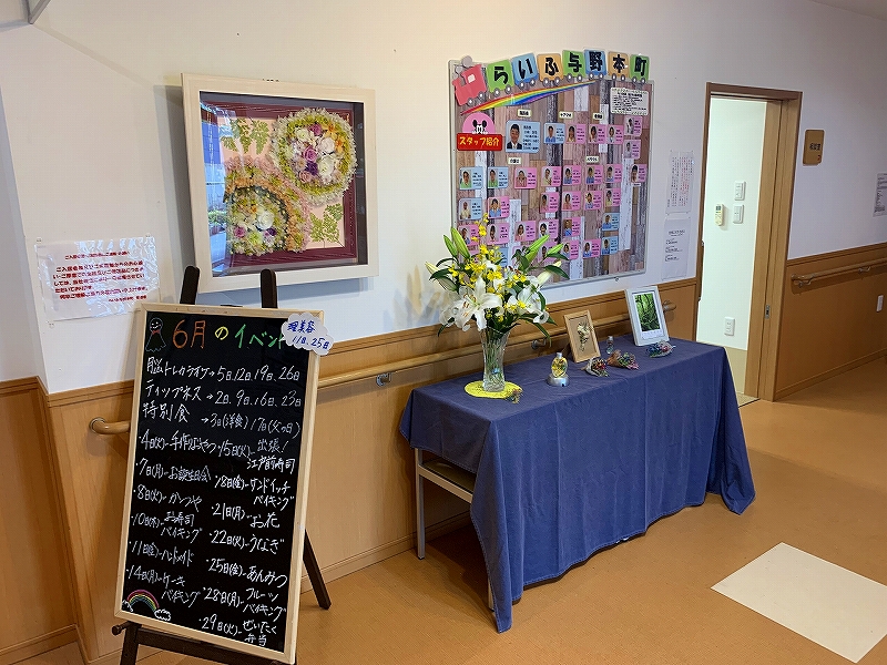笑顔が出る環境に不安や危険は存在しないと考え、ご入居者様の笑顔が見られる環境づくりを職員一人一人がその笑顔のために働き、ご入居者様やご家族様の笑顔の絶やすことのない施設づくりを行うことをスローガンとして行ってまいります。