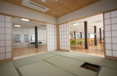 施設の設備面では、浴室には「機械浴」「リフト浴」を設置しており、様々な状態のご利用者様にも快適な入浴を提供します。和室では、お茶会などを通じて、畳の感触も楽しんでいただけます。理美容室には本格的な理美容椅子と洗面台を設置し、お申込みいただきますと、ヘアサロンの雰囲気の中カットからパーマまでご利用いただけます。
