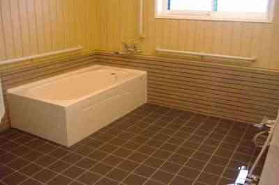 ホール(テレビ・ビデオ完備・和室(堀りこたつ)あり・自販機有り・食堂(日当たり良好) 男女共用浴室(シャワー付き)・男女別共用トイレ(水洗洋式)、車イス用トイレ・共用洗面所 家事室(洗濯機・乾燥機 完備)※乾燥機のみ有料・台所(職員が賄いのために使用) |