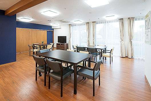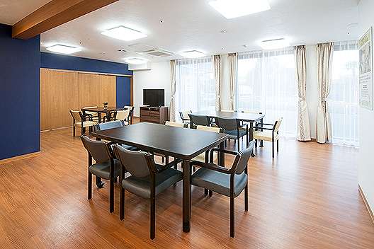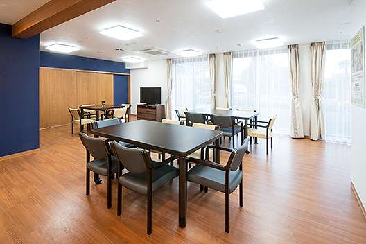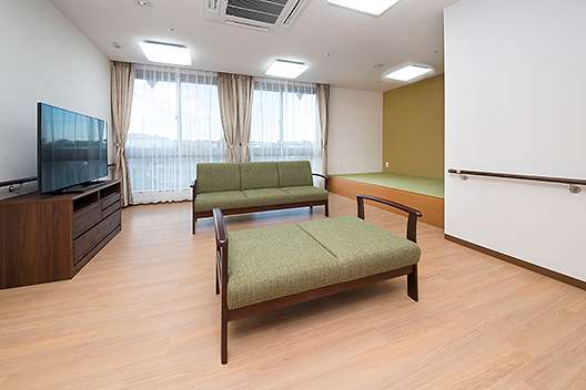 リビングスペースは、明るく、アットホームな雰囲気作りを大切にしています。ご入居者同士、ご家族との交流の場としてご利用ください。