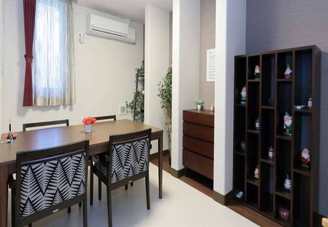 共有スペースにおいては、様々な趣味活動を行い、ご入居者様同士の賑やかなひとときを提供させていただきます。出来ることを増やして頂き、活動を通して達成感や生きる喜びを感じていただきます。午前中にはラジオ体操、午後には集団機能訓練を定期的に行い、心身の機能向上を図っております。
