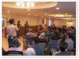 日々のレクリエーションの充実のために、各種プロの講師を招いています。 健康ヨガ教室、寄席、音楽ケア体操なども人気のレクリエーションです。