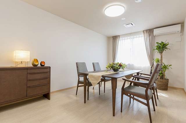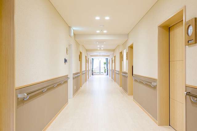 | 居室設備 | 電動ベッド、照明、エアコン、クローゼット、洗浄機能付きトイレ、温水器付洗面台、ケアコール(二ケ所)、電話回線、見守りシステム、防火設備(スプリンクラー、熱探知機、非常時放送スピーカー)、寝具、防災カーテン |