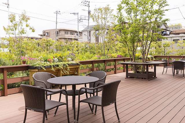 | 共有設備 | レストラン、エレベーター、脱衣所、個浴、台浴槽、機械浴、理美容コーナー、リハビリコーナー、ゲストルーム、コミュニティルーム、エントランスホール、ランドリー、ウッドデッキ |