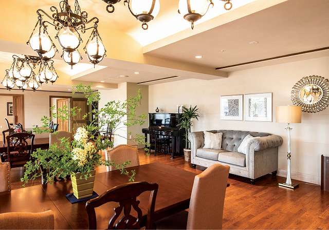 「家族が集う場所」にふさわしいインテリア。時には大切な家族と暮らす一軒家のように、時にはサービスの行き届いたホテルのように。ロングライフ・クイーンズ宮崎台のすべてが、あなたの人生を輝かせるための舞台となります。