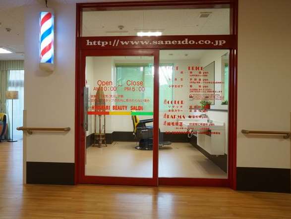 たとえば「理美容室」。浴室等で散髪する介護施設も多い中、家族の家ひまわりでは本格的な理美容室が設けられ、訪問理美容時に活躍します。