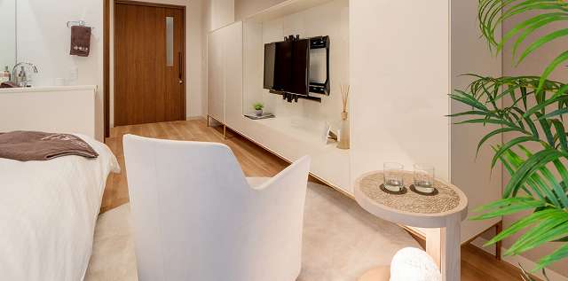 | 居室設備 | エアコン、介護対応型電動ベッド(寝具付)、緊急コール、車いす対応型洗面台、温水洗浄機能付トイレ |