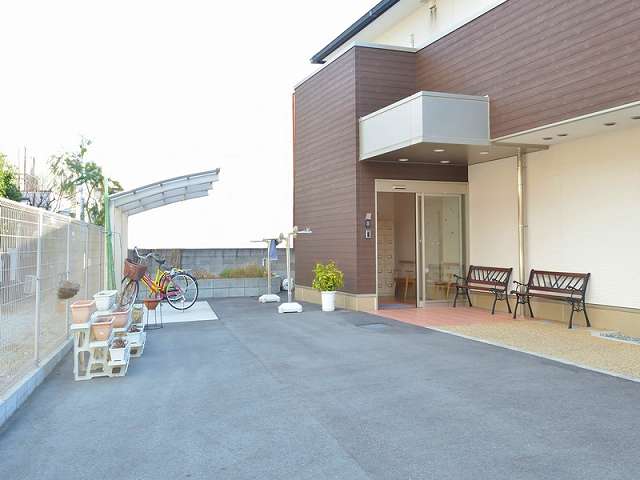 たのしい家出屋敷は、広い敷地を十分に活かし、玄関の横には菜園スペースを設置しています。ご入居者様の行動を制限せず、ストレスの少ない日常をお送りいただけるよう、認知症状の緩和と改善を促すための工夫がされたホームです。阪神出屋敷駅から徒歩3分の場所に位置し、利便性にも特化しています。