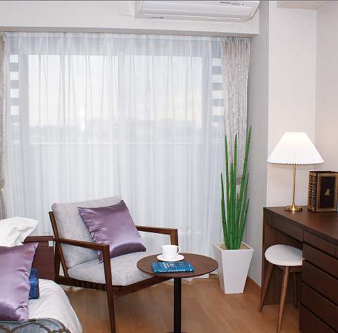 | 居室設備 | クローゼット、温水洗浄機能付トイレ、エアコン、床暖房、テレビ配線、電話配線、車椅子対応洗面化粧台、介護用電動ベッド、カーテン、ケアサポートソリューション(居室内見守りシステム) 、キッチン(一部居室のみ) |
