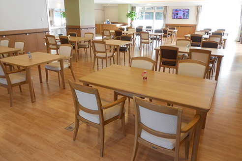 共有スペースには防音設計の専用カラオケルーム、おしゃべりに花が咲く談話コーナーを完備。広い食堂で季節感や伝統行事を感じられるおいしいお食事をご用意、楽しいお食事の時間をお楽しみいただけます。
