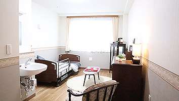 | 居室設備 | 介護用電動ベット、ナースコール、シャワー付トイレ、車椅子対応洗面台、エアコン、スプリンクラー、クローゼット、カーテン(レース、ドレープ) |