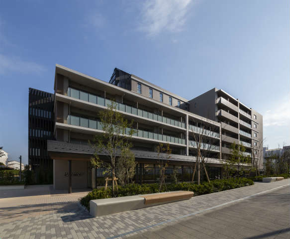 クレールレジデンス横浜十日市場ケアフロア(サービス付き高齢者向け住宅)は隣接する分譲マンション『ドレッセ横浜十日市場』と一体開発。