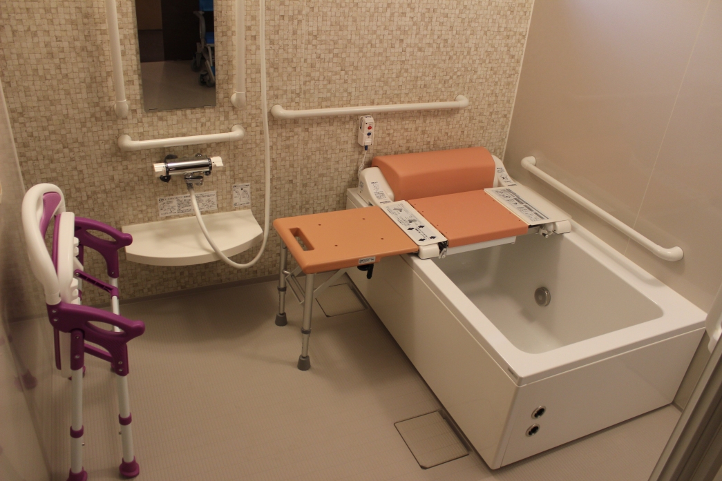 | 居室設備 | トイレ温水便座、エアコン、ナースコール、クッションフロア、バリアフリー、地上波アンテナ、BSアンテナ、冷蔵庫、カーテン、介護用ベッド、引き戸式ドア、照明器具、洗面化粧台、避難設備、防災設備、トイレ内手すり、室内物干し器具、収納、リフト浴、防火カーテン |