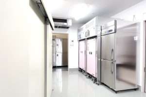 1階には寝たまま入浴できる特殊浴槽があり、厨房では安心安全なお食事をお届けするために、再加熱カートを使った「ニュークックチルシステム」を導入しております。