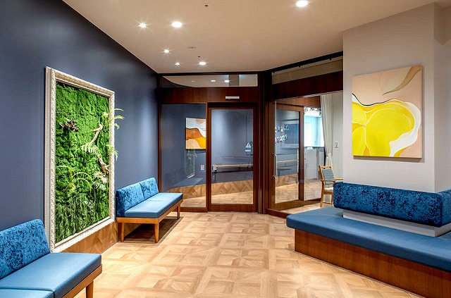 ネイビーブルーを基調としたシックな館内。