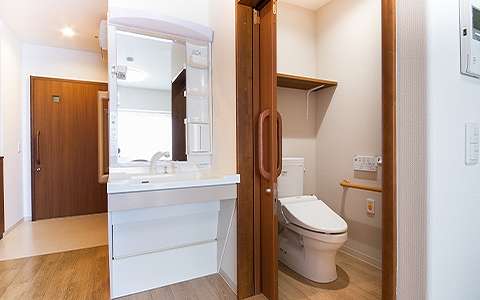 全48戸の居室にはトイレはもちろん、浴室や洗面台、IH調理器等も完備しております。緊急コールも備え付けなので、安心して毎日の生活を送っていただけます。