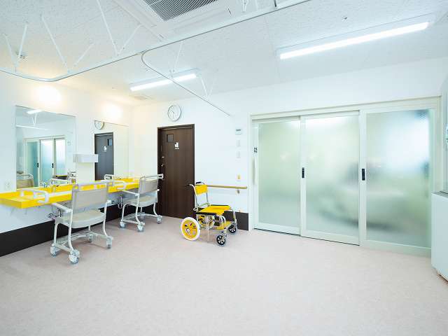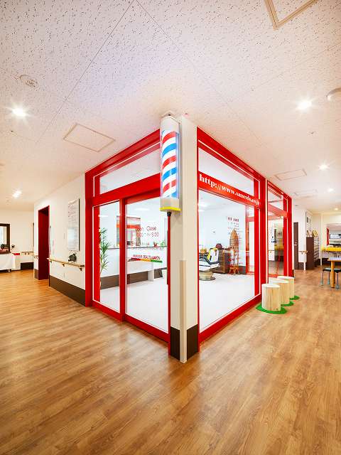 たとえば「理美容室」。浴室等で散髪する介護施設も多い中、家族の家ひまわりは本格的な理美容室が設けられ、訪問理美容室・歯科にも活用します。