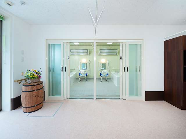 他にも、共同浴室の前には温泉や銭湯を連想させる「湯のれん」や、食堂入口に灯る「行灯」などで、ご入居者様を温かくお招きしています。