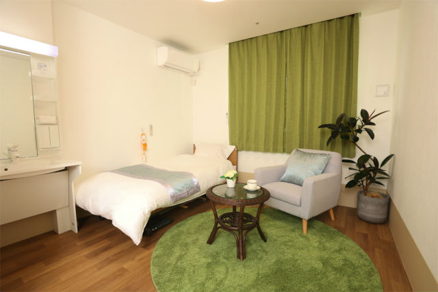 | 居室設備 | 介護用ベット(寝具を含む)・エアコン・ナースコール・トイレ・洗面台・クローゼット・照明 |