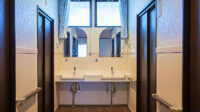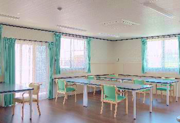 施設の外観・内観ともに白と木目を基調としており、清潔感があり それでいて暖かくおしゃれな印象です。また外内で木目の色を変えているので飽きの来ない落ち着いた施設となっております。