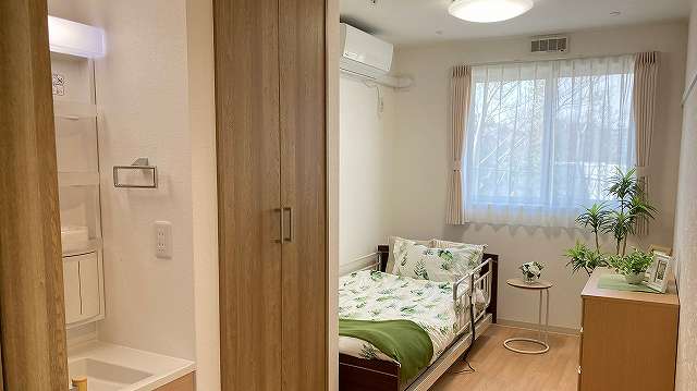 | 居室設備 | 緊急通報装置, テレビ回線, エアコン, クローゼット, 照明器具, 電動介護ベッド, カーテン, 寝具, 車椅子対応洗面化粧台, チェスト |