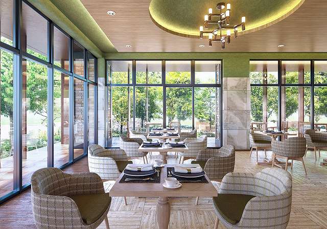 | 共有設備 | ラウンジ、レストラン、プレイラウンジ、温泉大浴場(人工)、多目的室、カラオケルーム、宅配ロッカー、駐車場、庭、自転車置き場、厨房、風除室、エレベーター、コンシェルジュカウンター |