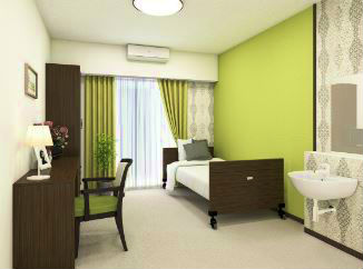 | 居室設備 | 居室総数90室(全室個室)、床面積18㎡~19.80㎡(介護ベッド、洗面台、デスク、イス、チェスト、クローゼット、トイレ、エアコン、照明、TV端子、緊急通報装置、スプリンクラー) |