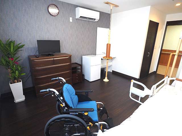 | 居室設備 | トイレ、車いす対応洗面台、収納、エアコン、照明器具、ナースコール、カーテン、時計、ごみ箱 |