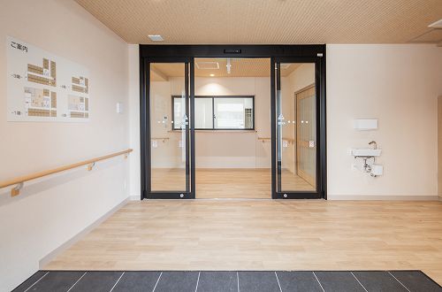 グレー基調の壁に木製のルーバーを組み合わせたモダンな外観、木目調で明るく心安らぐ内装デザイン、高齢者の方が生活しやすいバリアフリー構造など、過ごしやすい環境をご提供しています。
