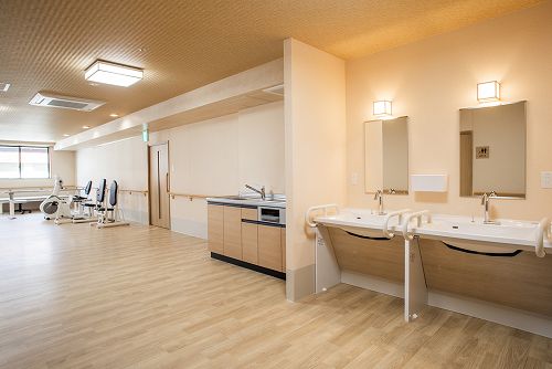 | 共有設備 | エレベーター、ナースコール、スタッフルーム、トレーニングルーム、一般浴室、健康管理室、相談室、大浴場、リネン室、リハビリ室、寝台用エレベーター、放送設備、更衣室、機械浴室、汚物処理室、洗濯室、玄関ホール、自販機、談話室、車いす用トイレ、避難設備、防災設備、風よけ室、食堂兼機能訓練室、駐車場、WiHi |