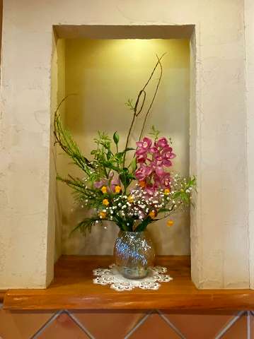 アンティークレンガと季節の草花に彩られた佇まいが特徴的。