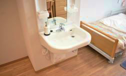 | 居室設備 | スプリンクラー、防災カーテン、緊急コール、介護専用電動ベッド、車いす対応洗面台、温水洗浄トイレ、エアコン、収納 |