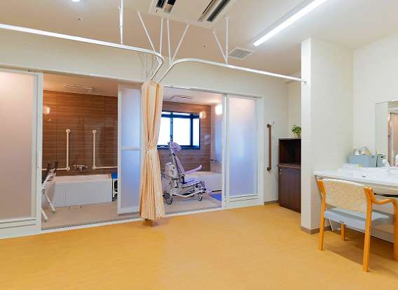 | 共有設備 | エントランス、ラウンジ、食堂(兼機能訓練室)、相談室、健康管理室、多目的スペース、個浴室、中浴室、機械浴室、温水洗浄機能付トイレ、来客用駐車場 |