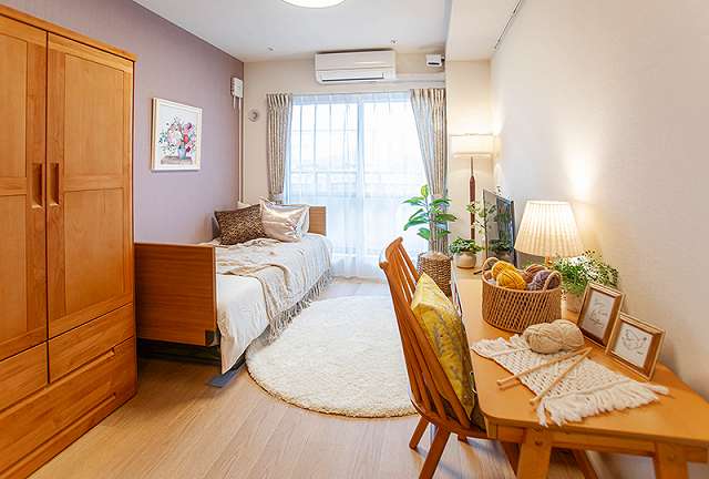 | 居室設備 | 引き戸式ドア(玄関)、開き戸式ドア(玄関)、靴箱、クローセット、車椅子対応洗面化粧台、鏡、引き戸式ドア(居室内)、車椅子対応トイレ(温水洗浄機能付き)、避難設備、物干しバルコニー、ナースコール、エアコン、照明器具、地上波TV配線、Wi-Fi |